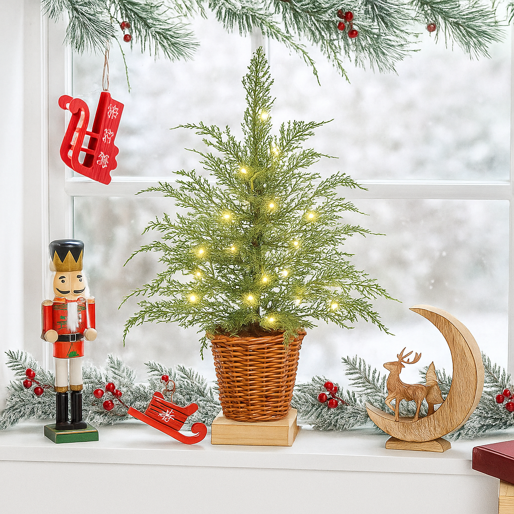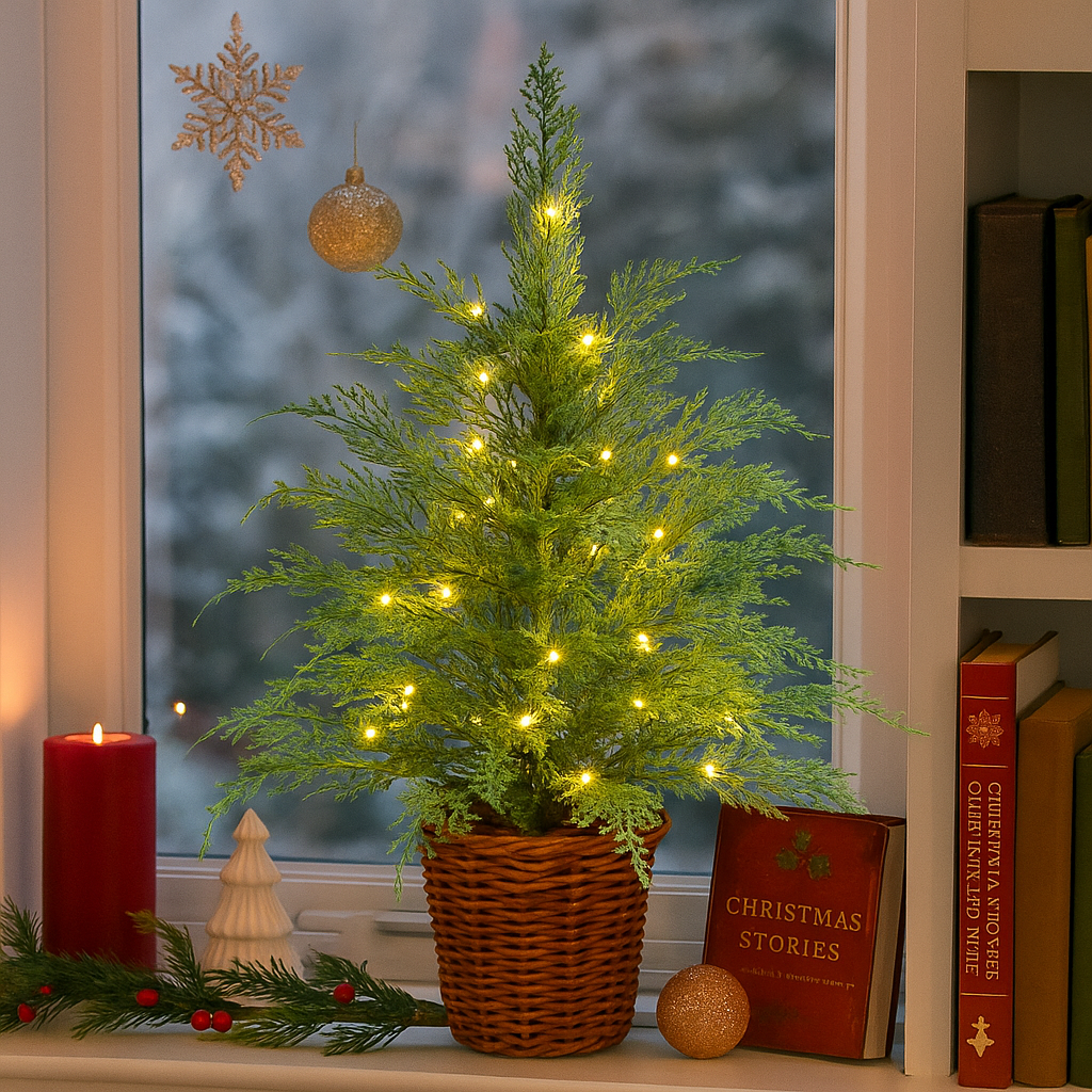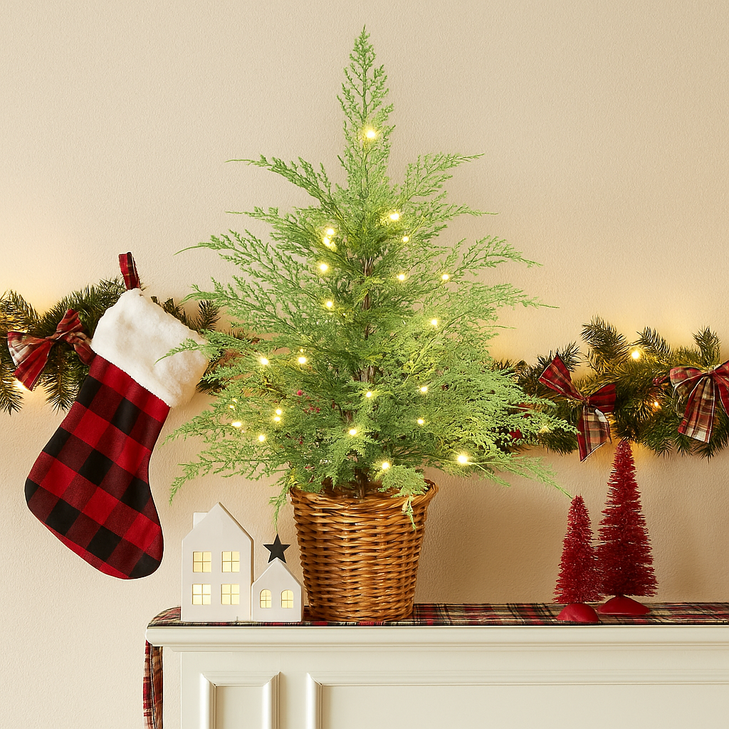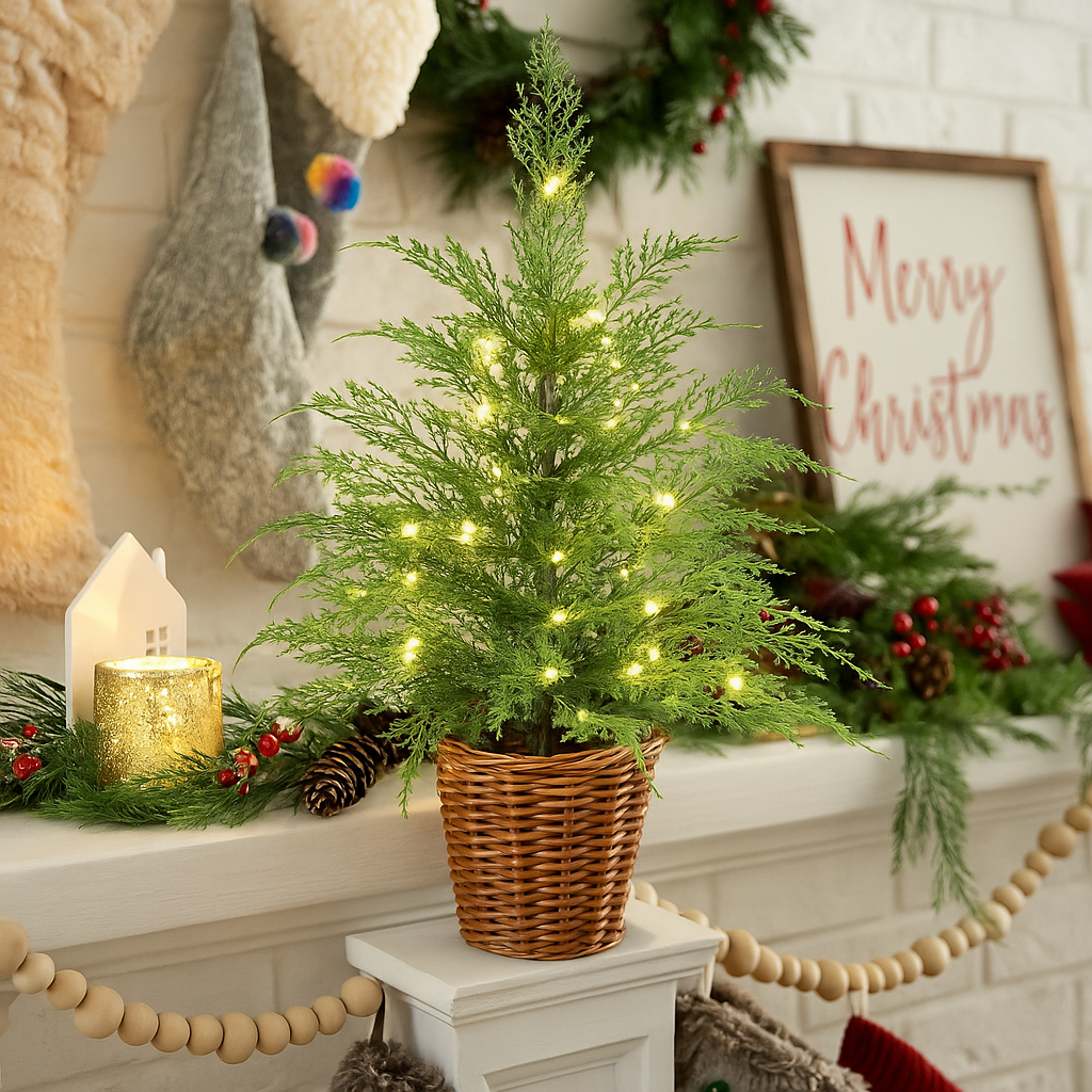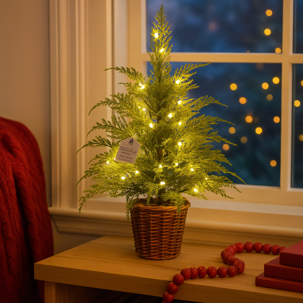 🎄 Mini Christmas Tree Charm:Bring festive cheer into any space with this Pre-Lit Cypress Christmas Tree. Its lush greenery and warm twinkling lights instantly create a cozy holiday atmosphere—perfect for tables, mantels, or windowsills.
